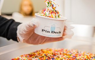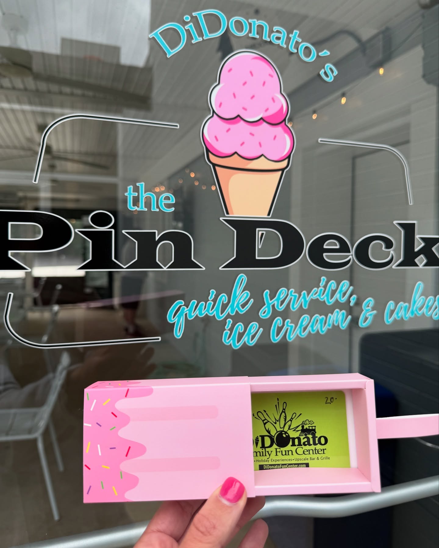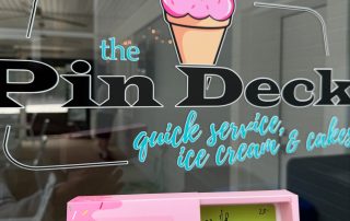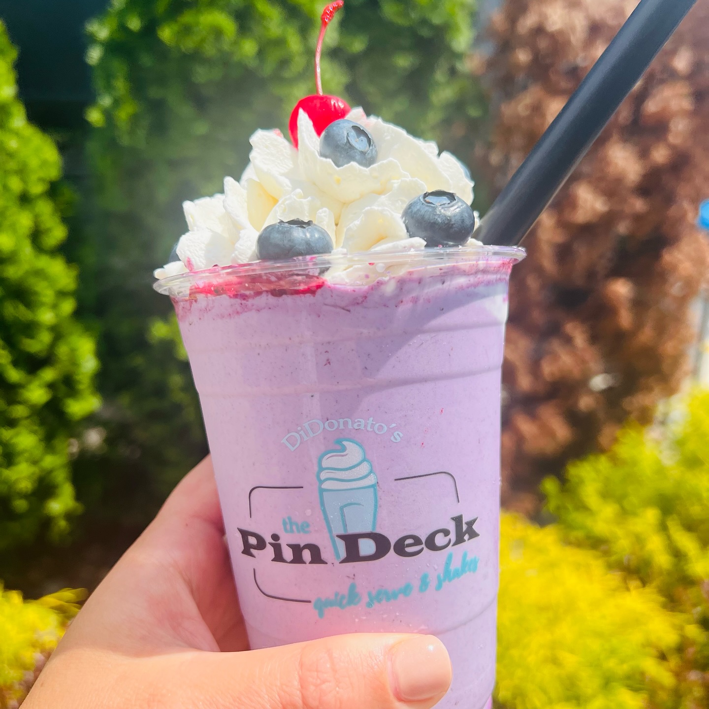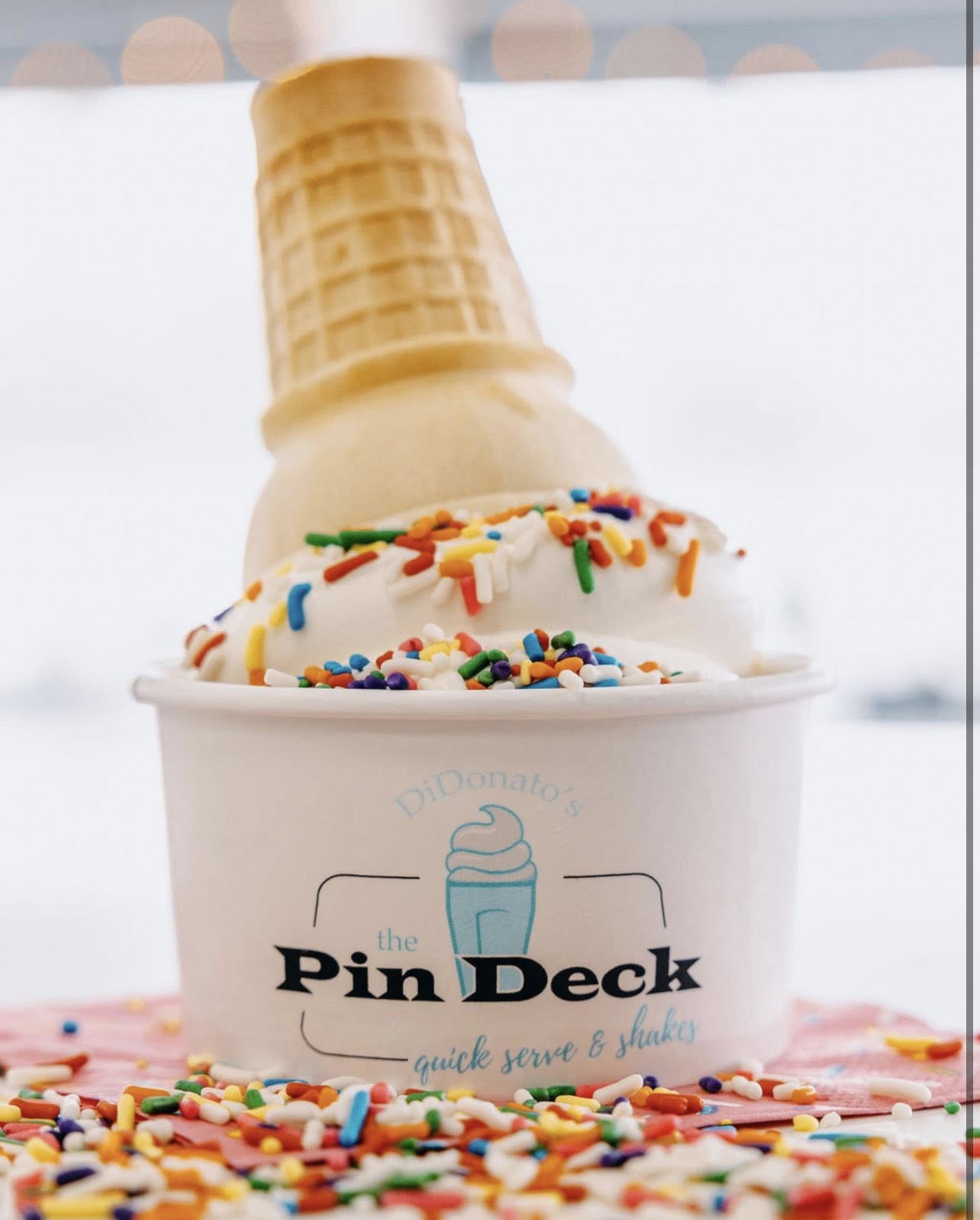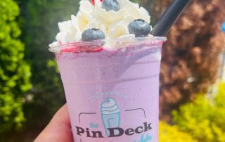 The Pin Deck is where fun meets flavor — with 20 varieties of homemade, hand-dipped ice cream made right on property, plus soft serve, waffles & ice cream, shakes, seasonal sundaes, boozy shakes, and quick-service favorites. Enjoy your order from our outdoor window, at the lanes, or inside the Alley Bar & Grille.