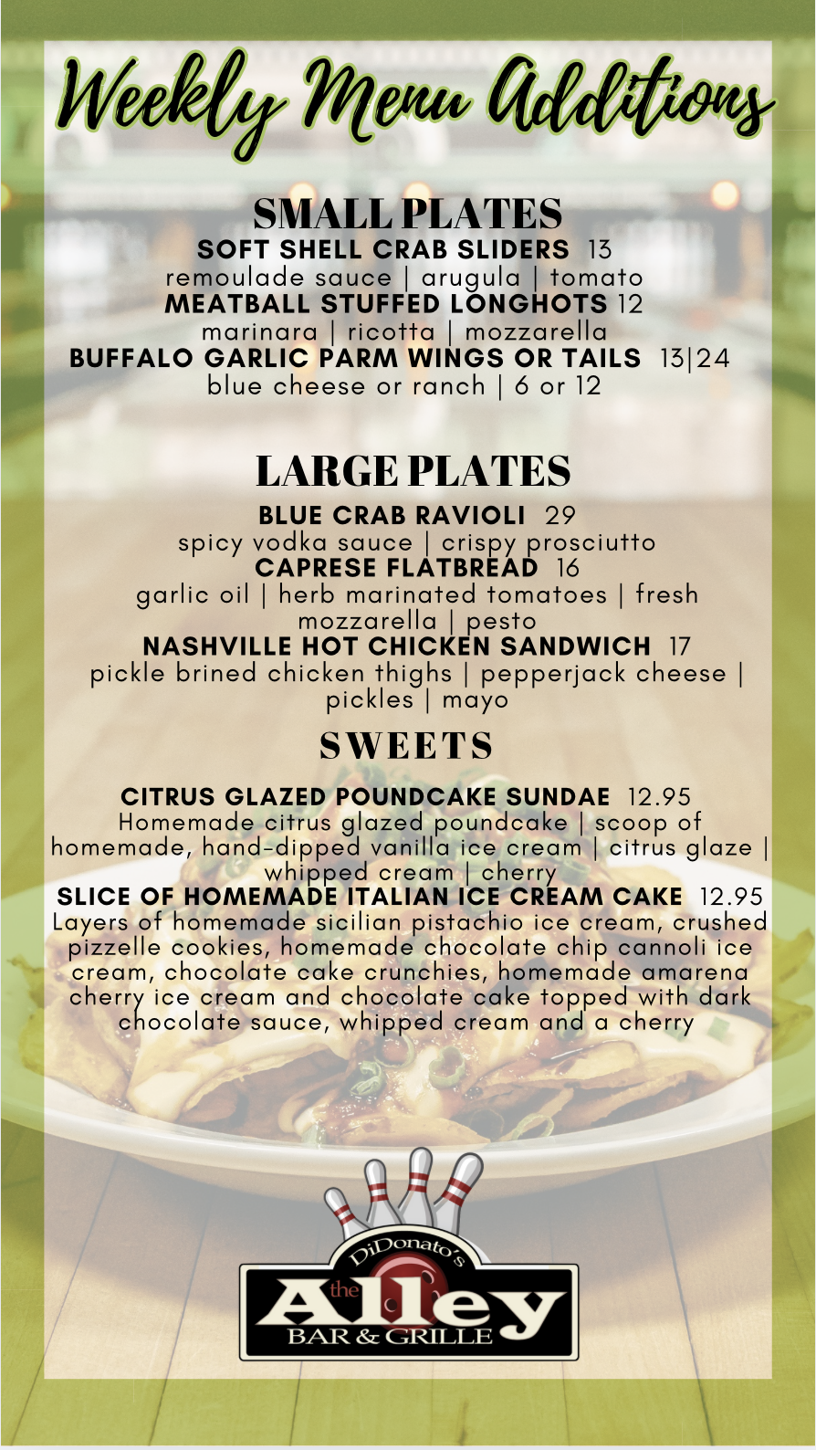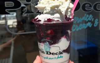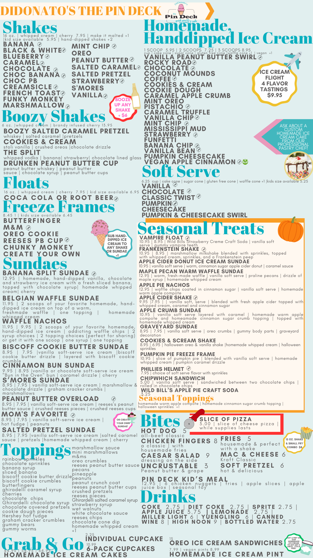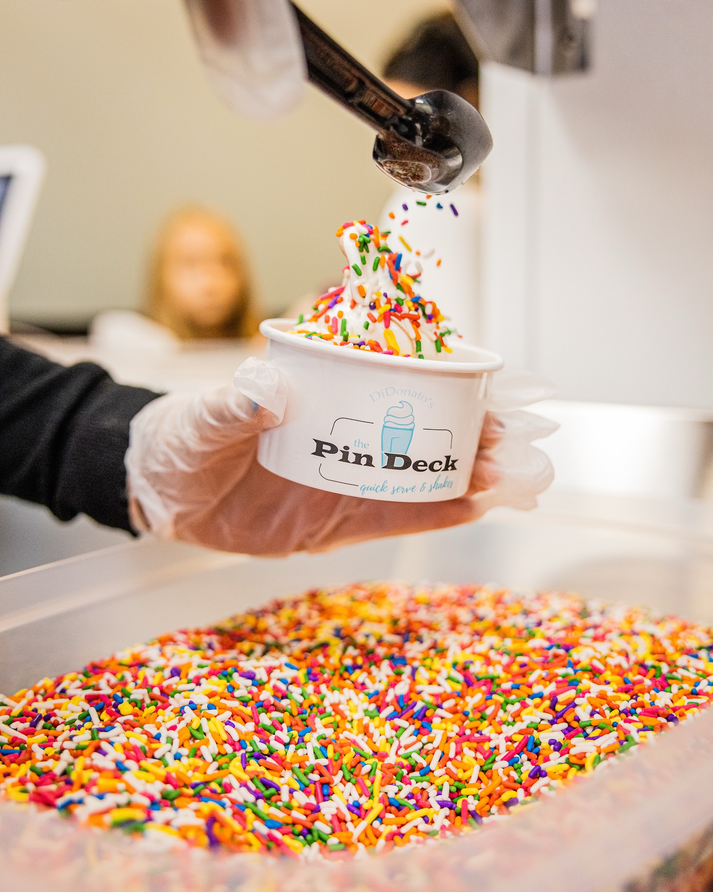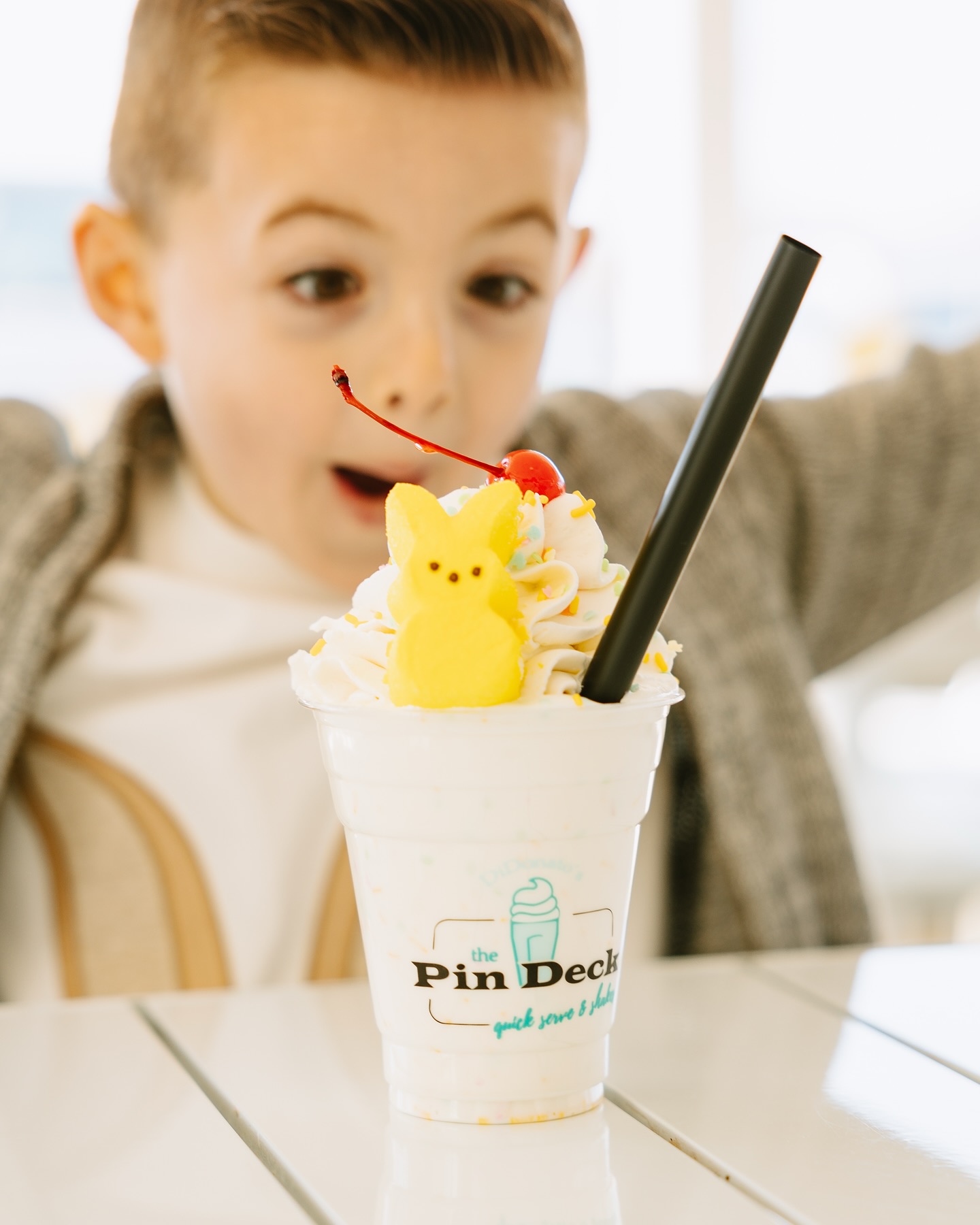 The Pin Deck is where fun meets flavor — with 20 varieties of homemade, hand-dipped ice cream made right on property, plus soft serve, waffles & ice cream, shakes, seasonal sundaes, boozy shakes, and quick-service favorites. Enjoy your order from our outdoor window, at the lanes, or inside the Alley Bar & Grille.